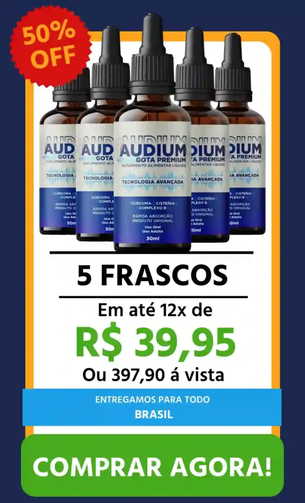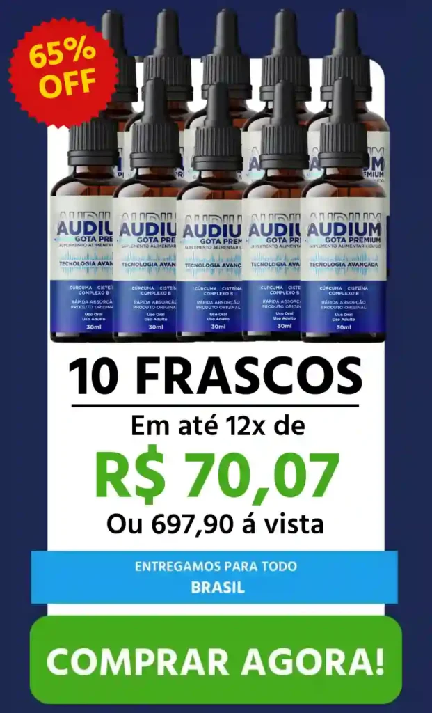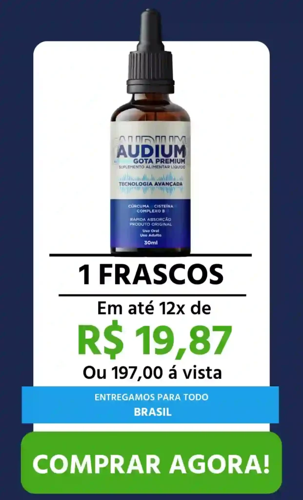 O Audium Gotas Premiun® é um composto 100% natural aprovado pela ANVISA, que proporciona a reversão dos problemas de zumbido no ouvido (tinnitus) e ajuda na melhoria da audição.
