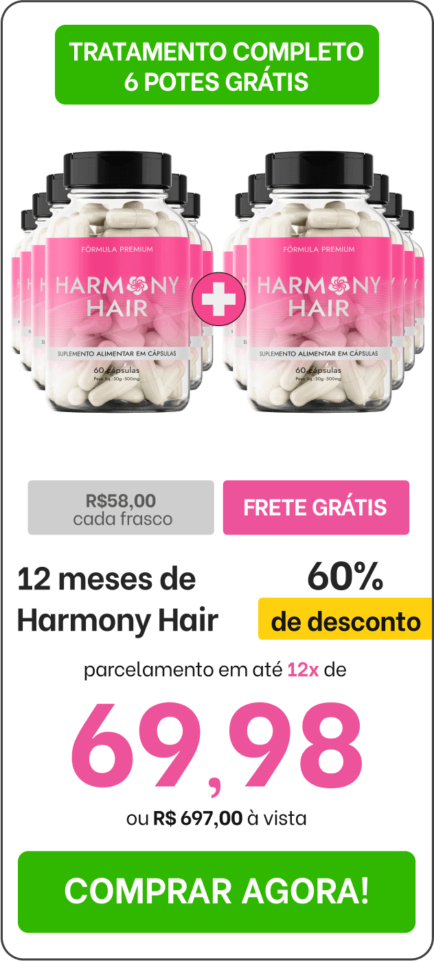 Harmony Hair é tudo que seu você precisa para acabar com a queda e transformar o seu cabelo, restaurando de dentro para fora!