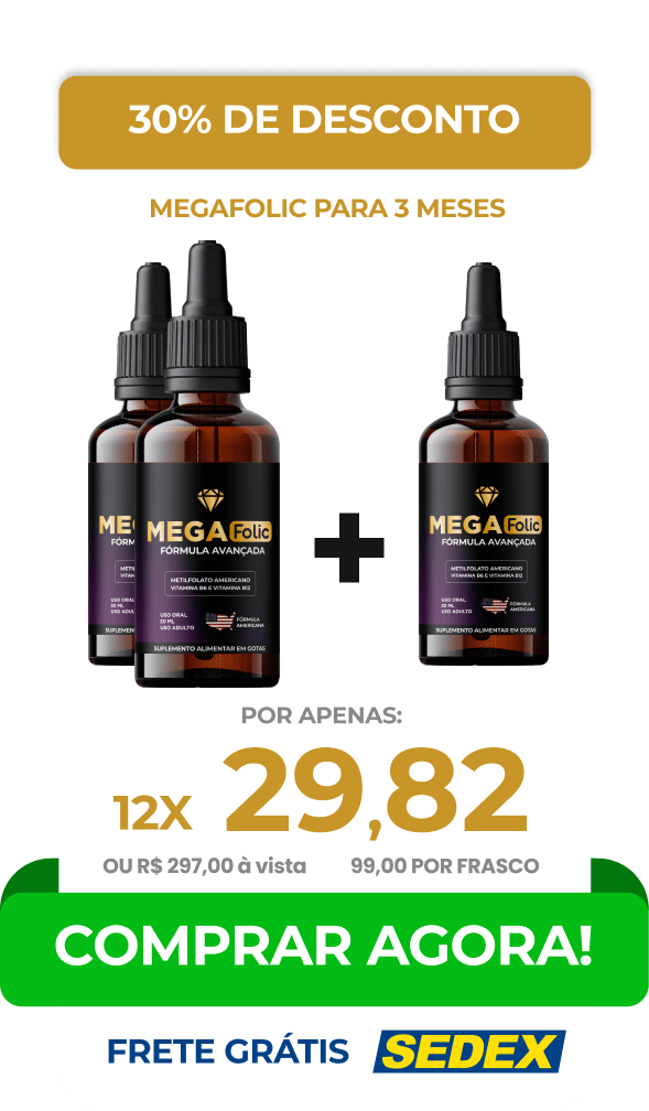 O Mega Folic tem como principal composto o Metilfolato (B9 - Ácido Fólico) ele é o ÚNICO composto da família de vitaminas b9 que não altera no organismo quando tomado com outras medicação (hipertensão, diabete, tireoide, controlados). Atua no escurecimento do cabelo e juntamente com a vitamina B6 e vitamina b12.