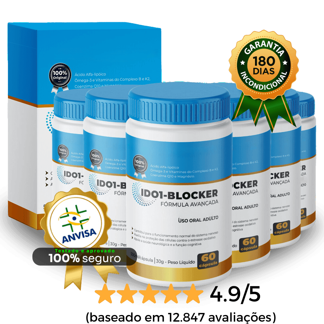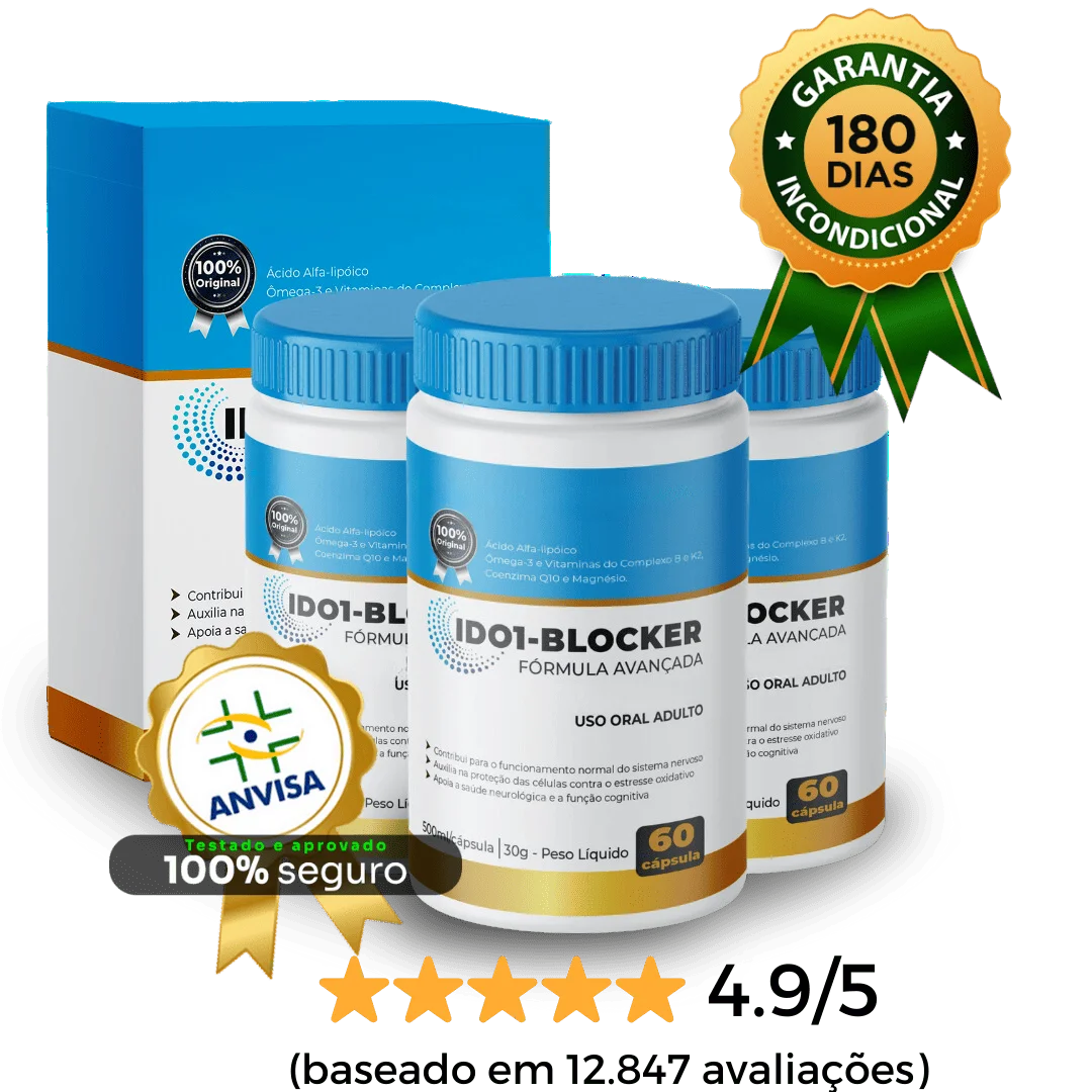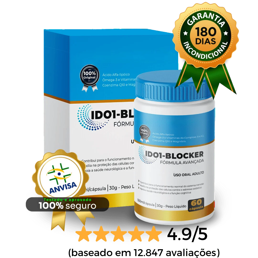 Conhecido como IDO1-BLOCKER, a formula nasceu nos laboratórios mais avançados do mundo e recebeu o selo de aprovação da ANVISA com exclusividade.