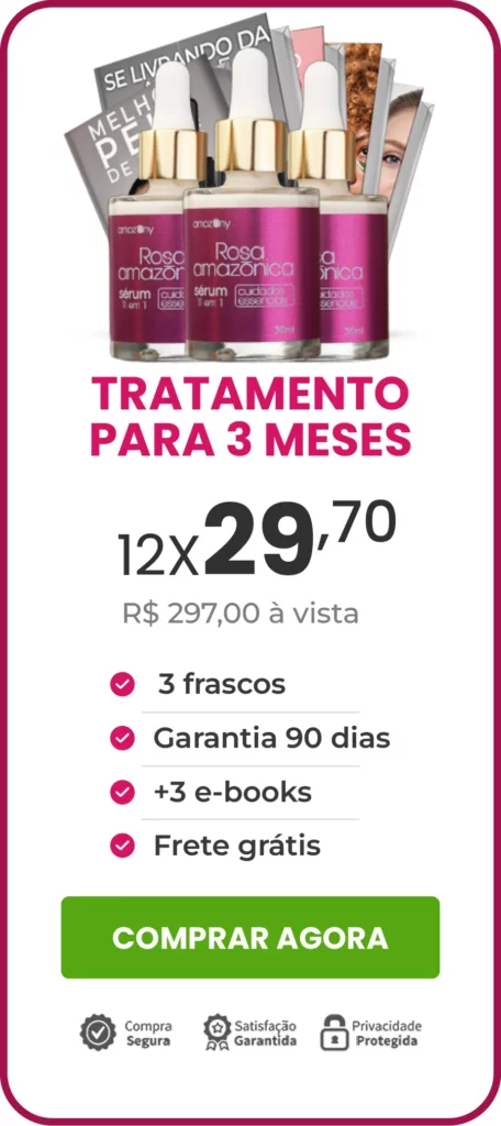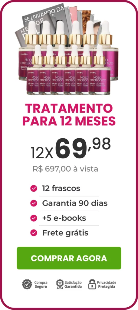 O estoque mais vendido e o mais recomendado é para 5 meses, porque apesar de você ter resultados imediatos com o Sérum, os melhores benefícios vem com o uso contínuo do produto. Além disso, você recebe até 50% de desconto quando você faz um estoque para 5 meses e se protege para quando a gente ficar sem produto.