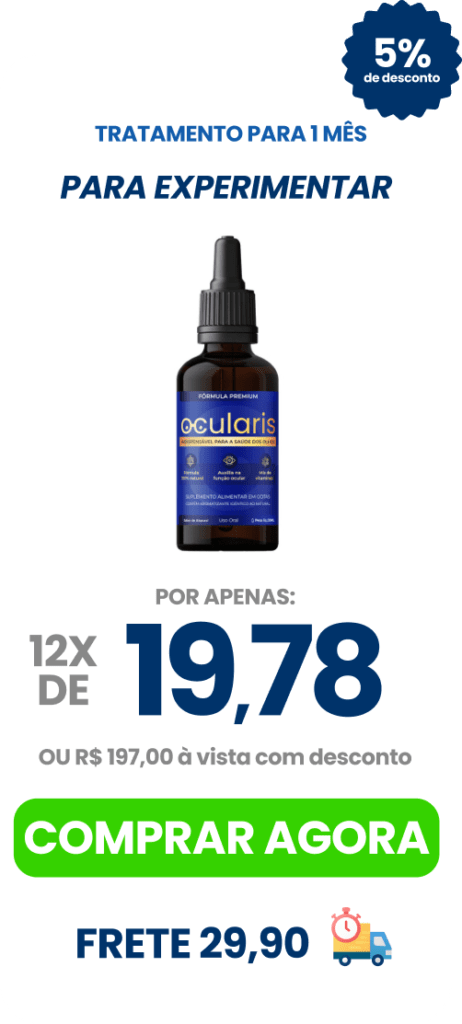 Hoje o Ocularis é referência no mercado pois todo o composto da nossa fórmula é aproveitado, pois ela e feita sob medida para a aplicação Sub Lingual, nela vasos que acessam diretamente a corrente sanguínea absorve rapidamente todo o ativo, todo o composto promovendo uma absorção mais rápida e 99% mais eficaz.