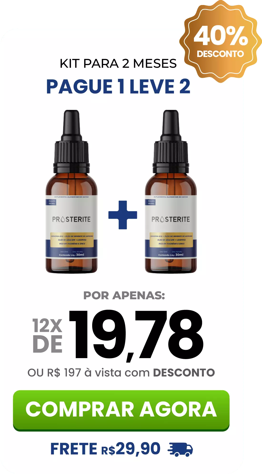 Aproveite um desconto especial de até 60% em todos os kits Prosterite. Não perca a oportunidade de adquirir aquilo que você deseja por um preço nunca antes visto!