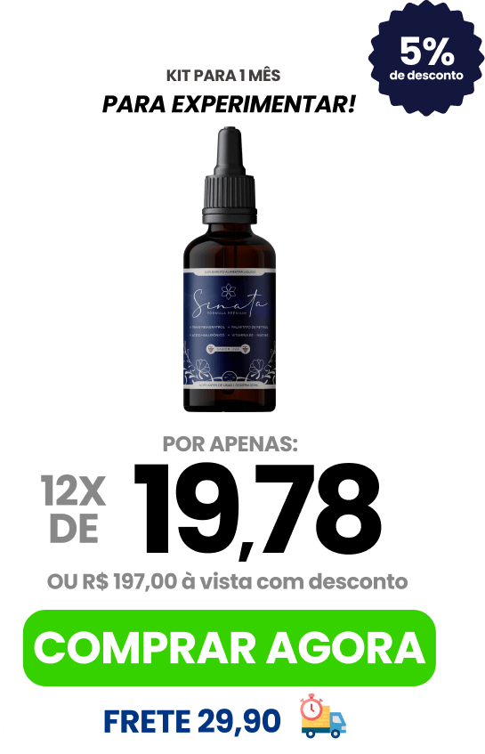O Sinata Gotas possui o famoso colágeno VERISOL®, único comprovadamente capaz de agir exclusivmente na pele, proporcionando um rosto mais liso e com menos marcas do tempo.