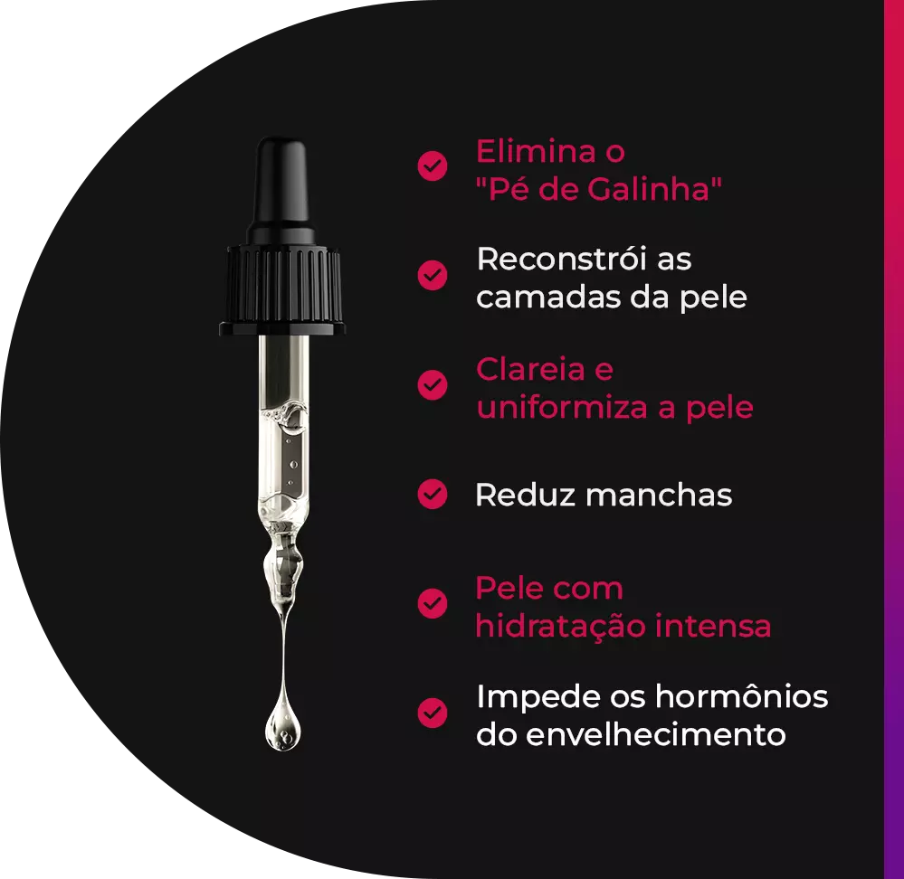 Atuando diretamente na produção de colágeno, restauração de células velhas e proporcionando uma pele firme e livre das rugas.