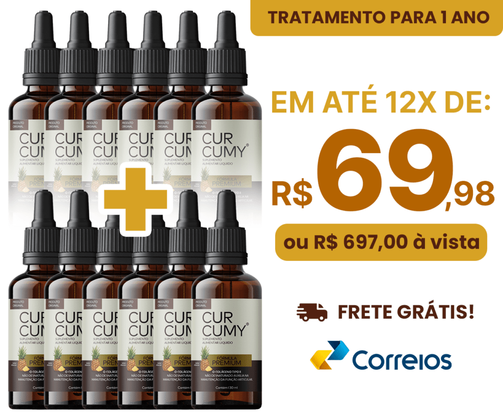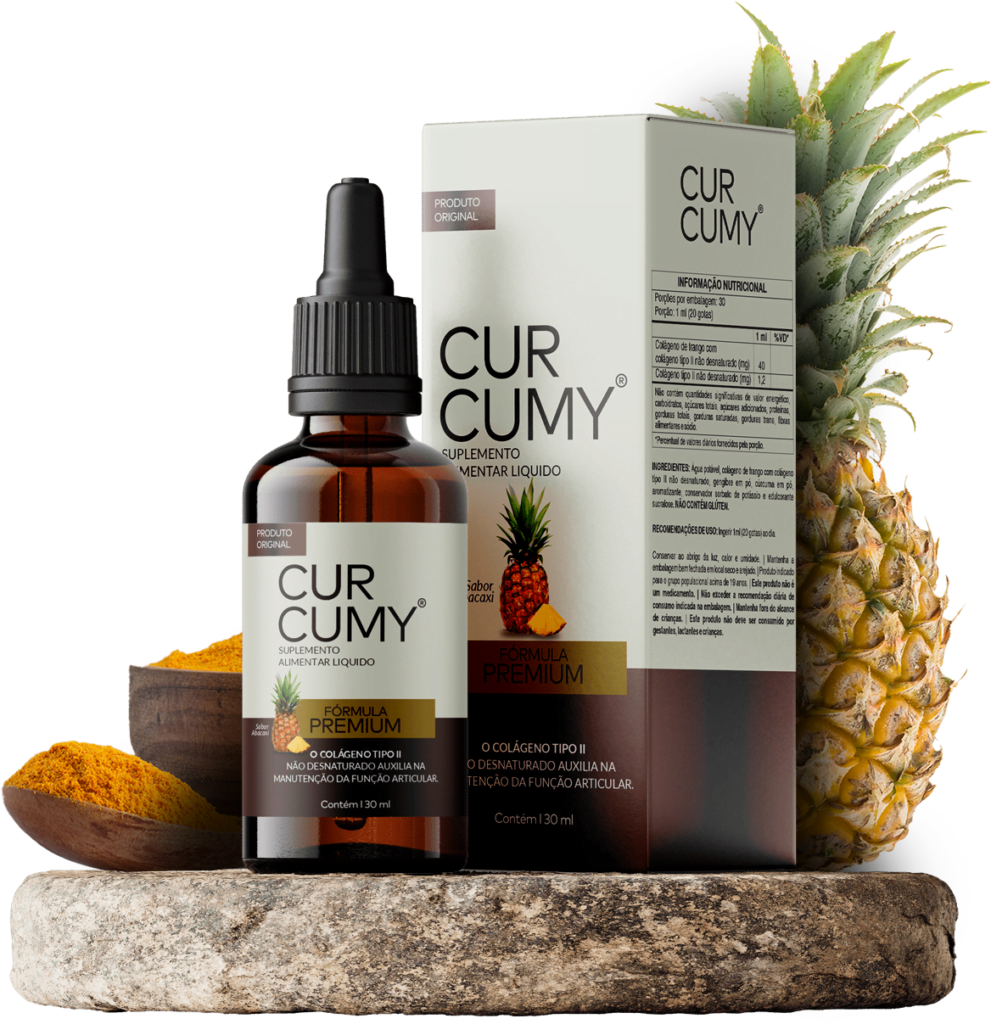 Ingerir 1 ml (20 gotas) do Curcumy por dia (sabor suave de abacaxi), pode ser colocado em alguma bebida de sua preferência, para um alívio prolongado da dor.