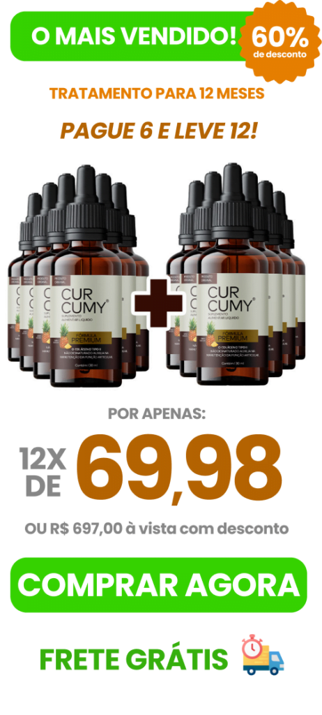 O estoque mais vendido e o mais recomendado é para 5 meses, porque apesar de você ter resultados imediatos com o Curcumy , os melhores benefícios vem com o uso contínuo do produto. Além disso, você recebe até 50% de desconto quando você faz um estoque para 5 meses e se protege para quando a gente ficar sem produto.