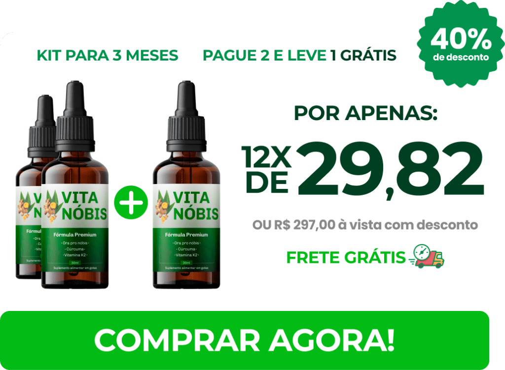 Resposta: VITANÓBIS age reduzindo a inflamação, fortalecendo os ossos e proporcionando alívio das dores articulares.